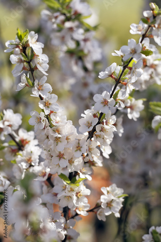 © olga_gl, Obraz premium Bush cherry on a sunny May day