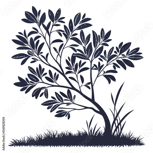 © Tarek, Naklejka premium Bush Tree with Leaves - Vector Silhouette Illustration on White Background | High-Quality Graphics Resource for Designers