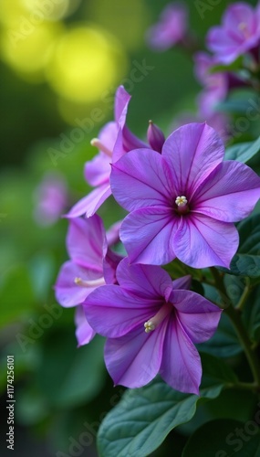 © Temteen, Fototapeta premium Bush with large, showy purple flowers blooming in the summer, bloom, garden flowers