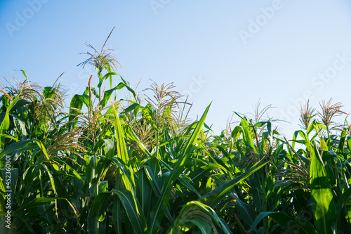 © SGr, Fototapeta premium Bushes of corn on a background of blue sky