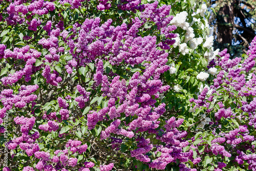 Naklejka premium bushes of spring flowering purple lilac closeup