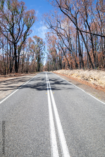 Fototapeta premium Bushfire damage from the 2025 bushfires started by lightning strikes in the...