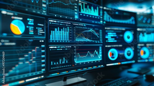 Obraz premium Business Analysis Data CRM Customer Reports Computer Technology Dashboard...