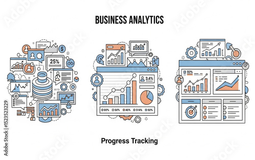 Naklejka premium Business Analytics and Progress Tracking Line Art Vector Icons | Data...