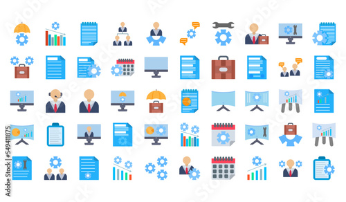 Fototapeta premium Business and management Flat icons set. Management icon collection. Vector illustrator