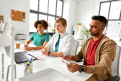 Obraz premium business and people concept - happy creative workers with laptop computers...