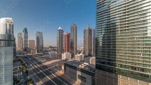 Obraz premium Business bay district skyline with modern architecture morning timelapse from...