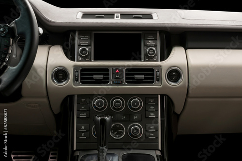 © alexdemeshko, Fototapeta premium Business car interior. Screen multimedia system.