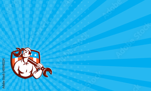Obraz premium Business card Mechanic Spanner Wrench USA Flag Retro