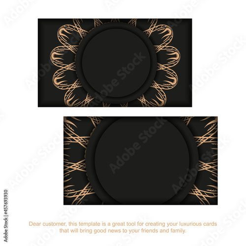 © Javvani, Fototapeta premium Business card template in black with brown mandala pattern