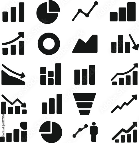 © MORIUM JANNAT, Obraz premium Business Chart and Graph Silhouettes Vector Data Icon Set