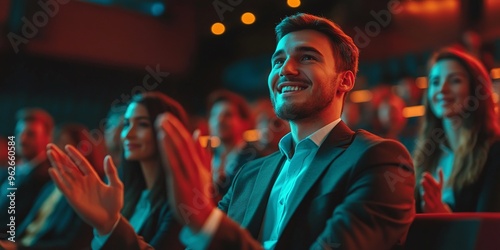 © AdorStudios, Obraz premium business colleagues clapping in corporate seminar at convention center celebrating success together during conference event with happy team applause