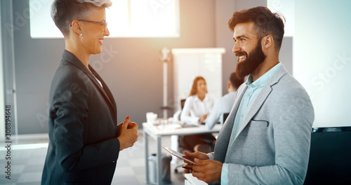 © NDABCREATIVITY, Fototapeta premium Business colleagues having conversation during coffee break