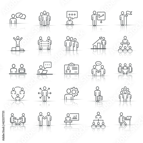 Fototapeta premium Business communication contour icon set in flat style. Team structure line...