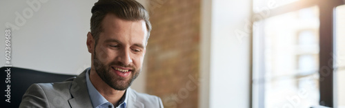 © Friends Stock, Obraz premium Business company employee smiling at his workplace