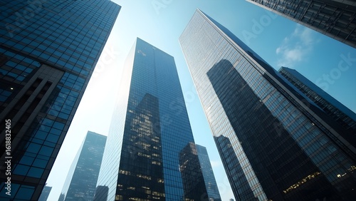 Fototapeta premium Business Complex with Reflective High-Rise Buildings and Sharp Architecture
