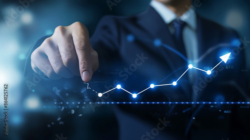 © Furkan, Fototapeta premium Business concept. Upward movement of investment stocks, up arrow hologram, Investment consultancy, invest your money in the right place, save your money