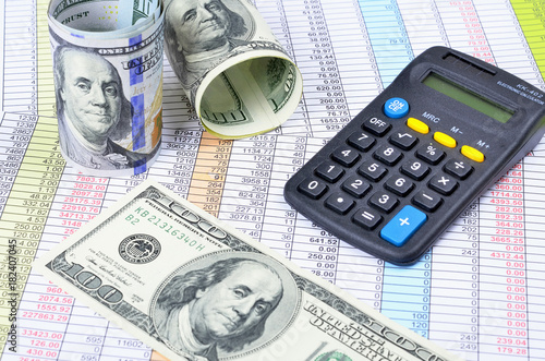 Fototapeta premium Business concept with calculator ,money and documents.Selective focus.