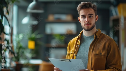 © nutcha, Fototapeta premium business concept young guy preparing for presentation, studio shot, panorama