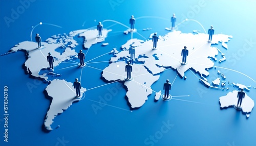 © 솔이 최, Naklejka premium Business connection map with people icons naturally connected by lines
