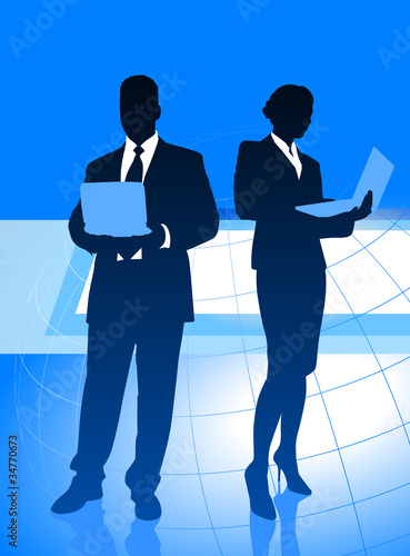 © iconspro, Obraz premium Business Couple on Global Economy Background