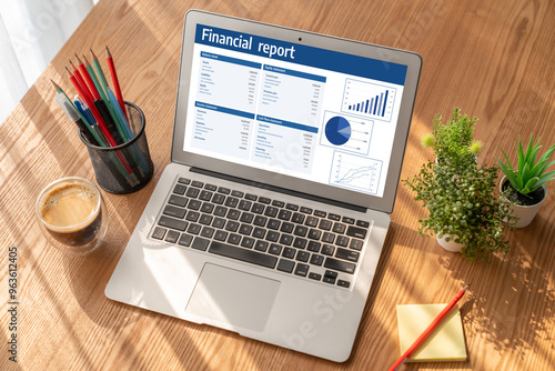 Fototapeta premium Business data dashboard provide business intelligence analytic for marketing strategy planning snugly with big data set to analyze customer demands and foreseeing business future