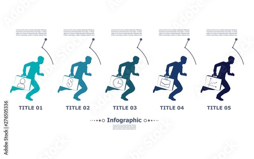 © JEGAS RA, Naklejka premium Business data visualization. Abstract elements of graph, diagram with steps, options, parts or processes. Business template for presentation. Infographic concept . Businessman running with briefcase