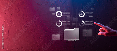 © Ivan, Obraz premium Business developer hand using board framework on virtual modern computer showing innovation Agile software development lean project management tool fast changes concept.Document Management System DMS