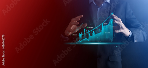 Fototapeta premium Business developer hand using board framework on virtual modern computer...