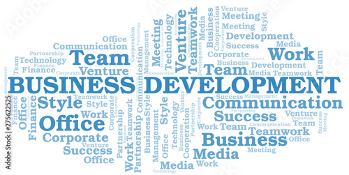© sharafmaksumov, Obraz premium Business Development word cloud. Collage made with text only.