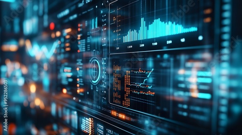 © The Little Hut, Fototapeta premium Business finance data analytics graphFinancial management technologyAdvisor using KPI Dashboard on virtual screen : Generative AI