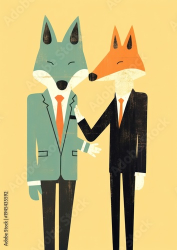 © Rawpixel.com, Obraz premium 2 business fox in suit shaking hand together art representation togetherness.