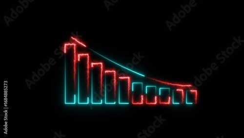 Fototapeta premium Business graph chart arrow lineneon bright magenta red color 4k illustration....