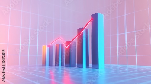 © AI Photo Stock, Fototapeta premium Business Growth Chart - Abstract 3D of a bar graph showing upward trend, suggesting financial success and growth. Neon lighting adds a modern feel.