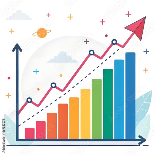 Fototapeta premium Business Growth Chart with Plants and Arrows Showing Positive Trend and Data Success
