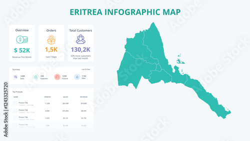 © bakarali, Naklejka premium Business Growth Infographic Map of Eritrea. Orders, Customers, Sales Overview & product Infographic Map of Eritrea. Easy to edit