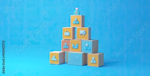 © IQRAM, Naklejka premium Business hierarchy pyramid structure with icons.