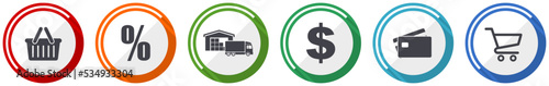 Obraz premium Business icon set, shop flat design vector illustration in 6 colors options...