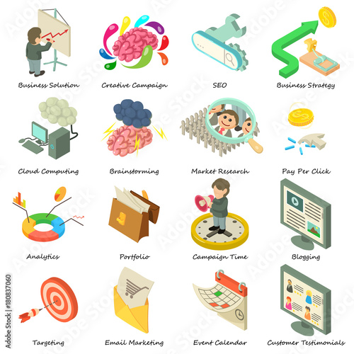 Fototapeta premium Business icons set, isometric style
