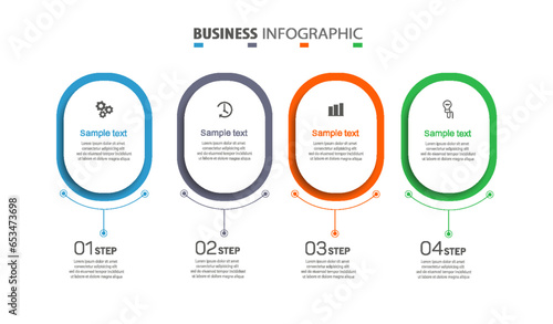 Naklejka premium Business infographic design template with 4 options, steps or processes. Can be used for workflow layout, diagram, annual report, web design
