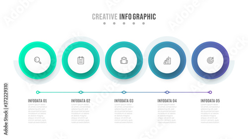 © Ammus19, Fototapeta premium Business infographic template. Timeline design with circle and 5 options or steps. Can be used for workflow layout, info chart, annual report.
