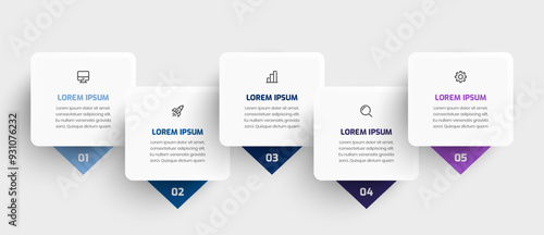 Fototapeta premium Business Infographic Template with Square Label Icon and 5 Number Can be Used...