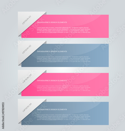 © Natalie Adams, Fototapeta premium Business infographics tabs template for presentation, education, web design, banner, brochure, flyer. Pink and grey colors. Vector illustration.