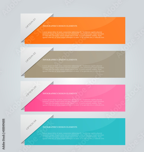© Natalie Adams, Naklejka premium Business infographics template for presentation, education, web design, banners, brochures, flyers. Orange, brown, pink, blue color tabs. Vector illustration.
