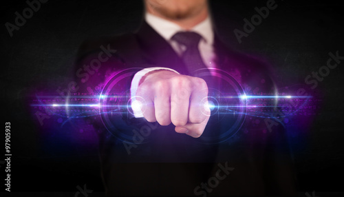 Fototapeta premium Business man holding future technology data system network