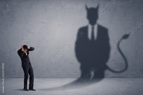 Fototapeta premium Business man looking at his own devil demon shadow concept background