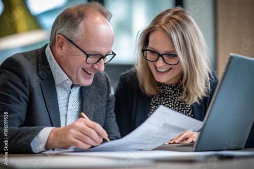 © jihee, Fototapeta premium Business man reviewing documents with client. Banking, lawyer, real estate, insurance, documentation consultation,