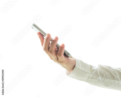 © Chinnapong, Fototapeta premium Business man's hands using smart phone device isolated on white background (clipping path)