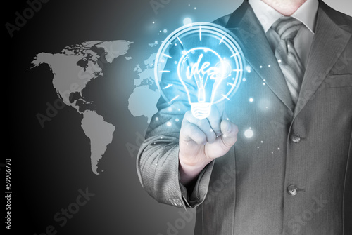 © Natalia Merzlyakova, Fototapeta premium Business man touching light of idea