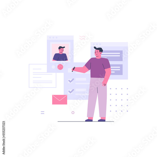 © DailyYouth, Fototapeta premium Business Man Working with Online Colleague